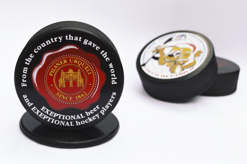 Rubena can offer several printings of different quality on ice hockey pucks, whichare suitable for promotional and communication purposes, sponsoring and even the game.