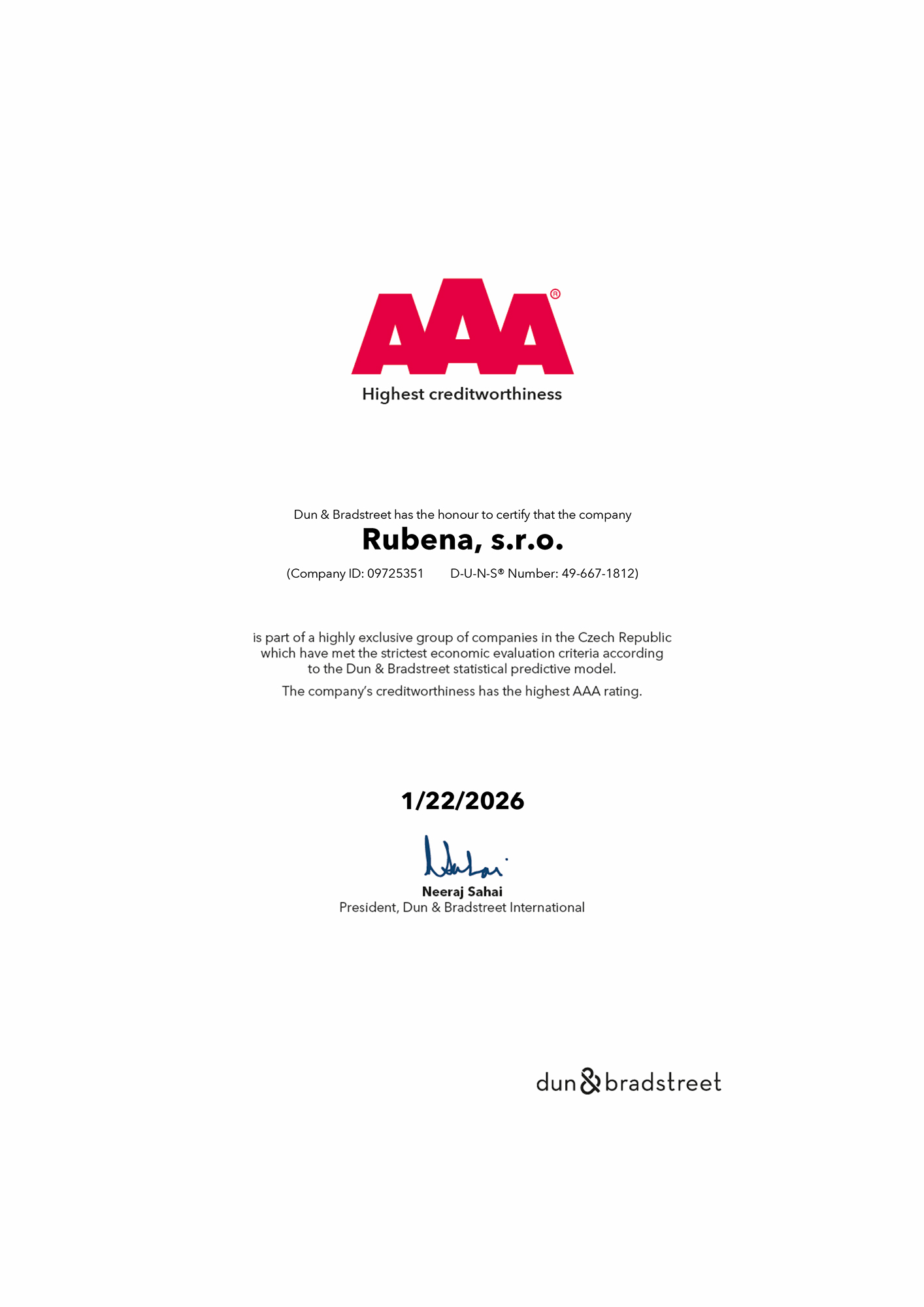 - In January 2000 Rubena successfully passed the 1st control audit